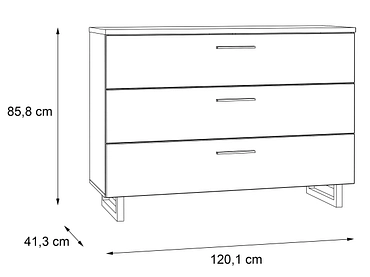 La cassettiera SIRIUS è una cassettiera pratica ed elegante. Il SIRIUS ha tre cassetti rifiniti con eleganti maniglie in metallo. La superficie della cassettiera è rifinita con un decoro in legno di quercia, che le conferisce un aspetto moderno e rustico. Le dimensioni del prodotto sono: Larghezza: 120,1 cm, Profondità: 41,3 cm, Altezza: 85,8 cm. La cassettiera è facile da installare.